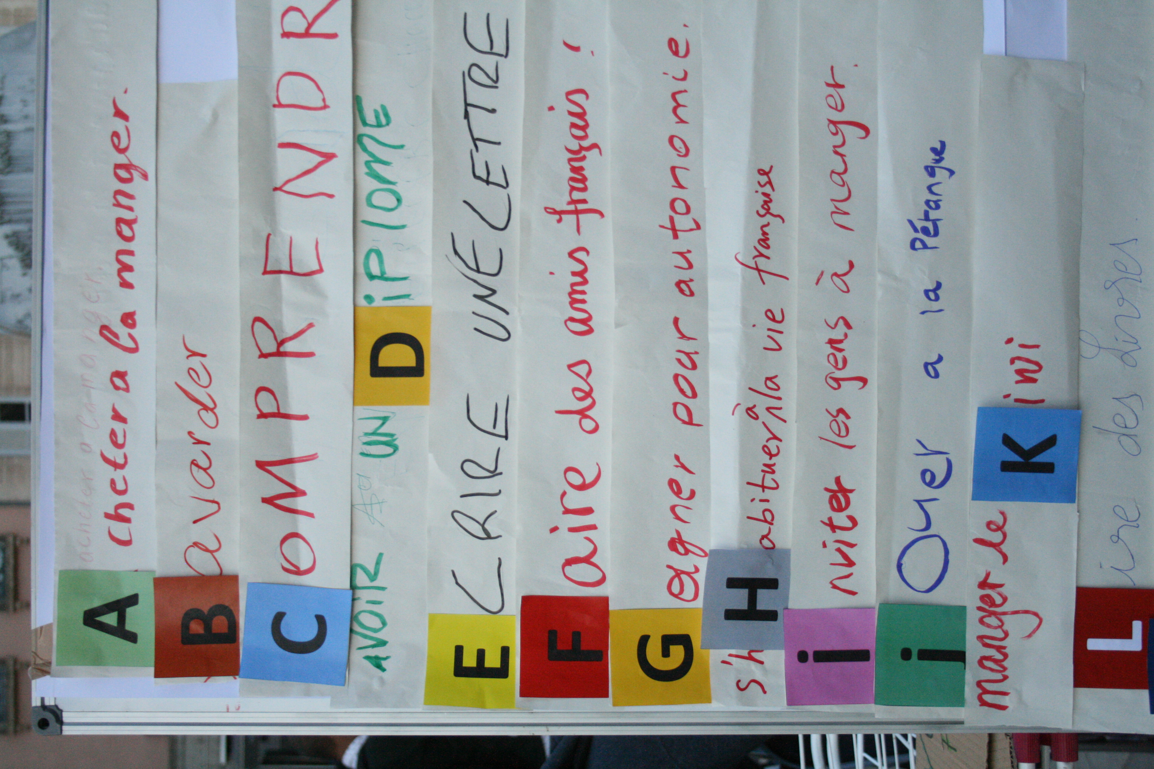 Cette organisation permet à chaque participant de faire ses propres choix d'apprentissage en fonction de l'urgence ou de ses besoins en langue française dans sa vie quotidienne.